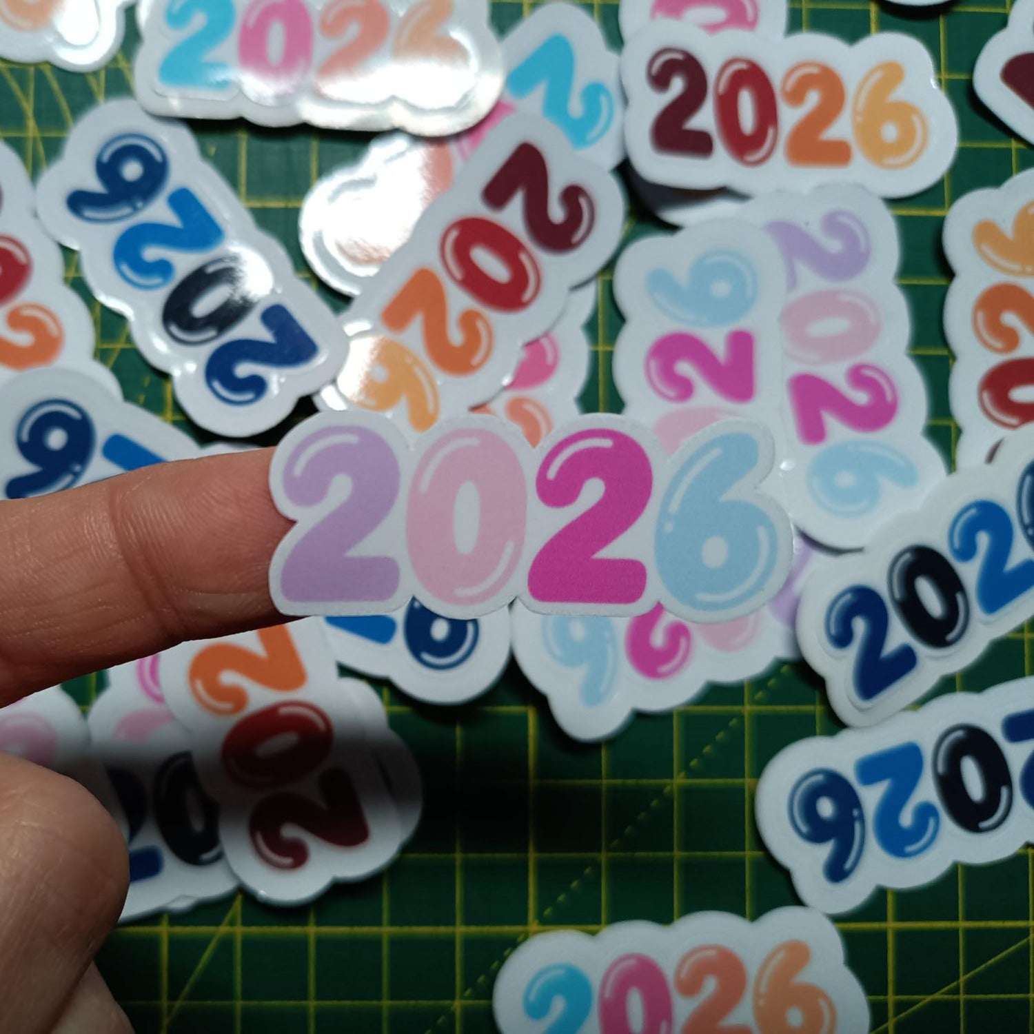 Bring a fun pop of color to your 2026 planning and creative projects with these glossy vinyl “2026” number stickers.