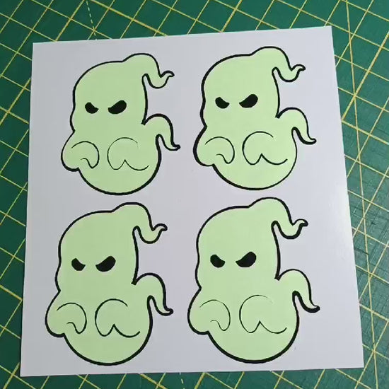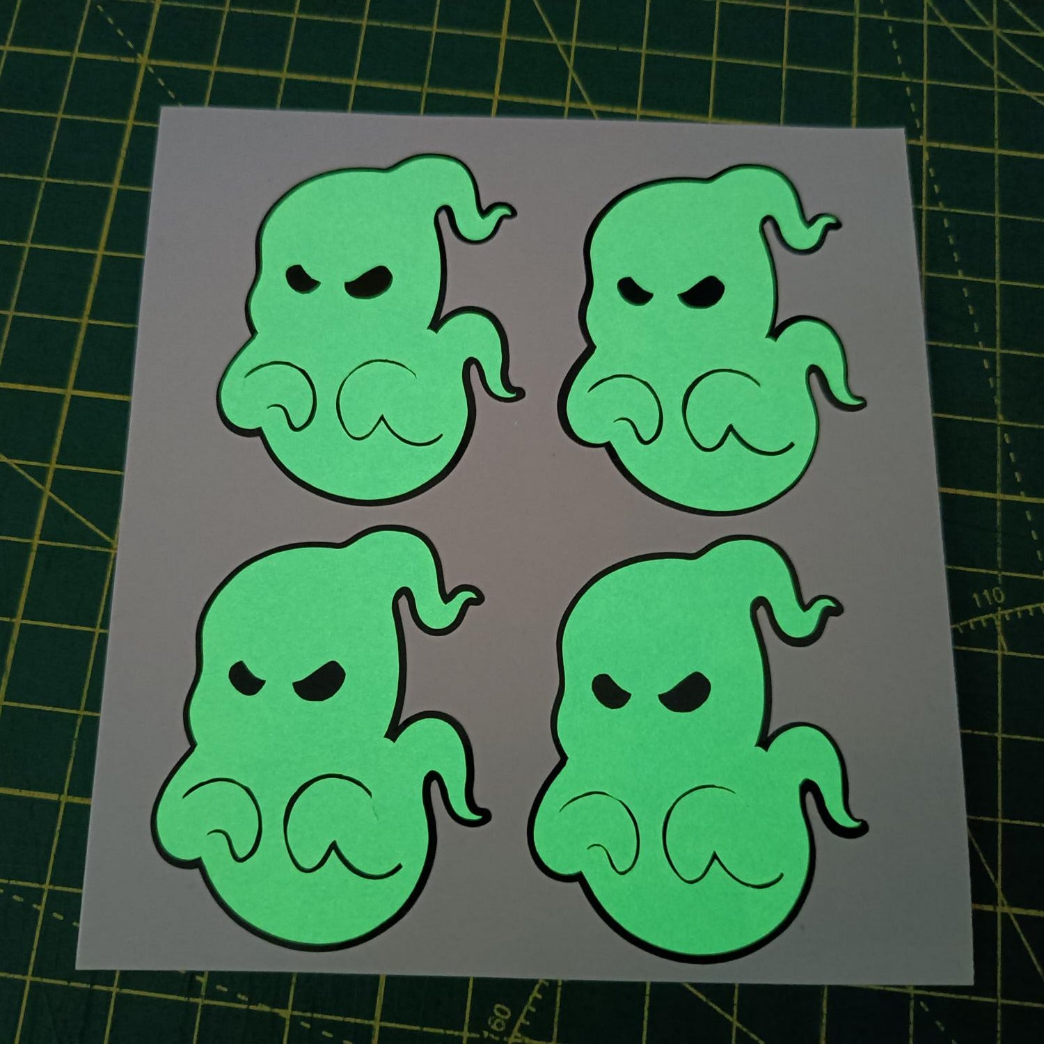 Brighten your crafts, journals, and personal items with this glow-in-the-dark ghosts sticker sheet. Perfect for planners, scrapbooks, stationery, laptops, and DIY projects.