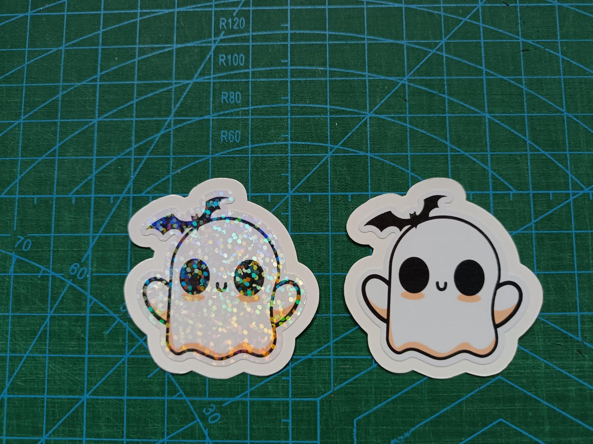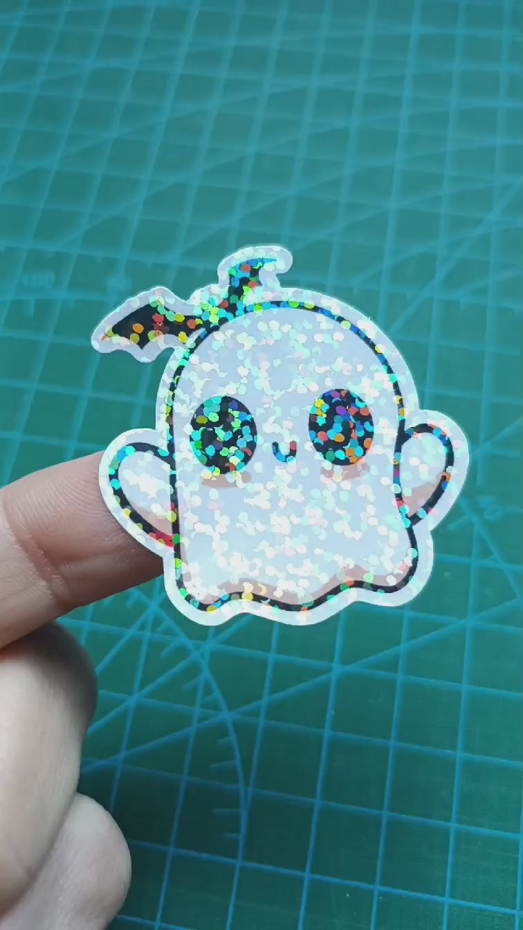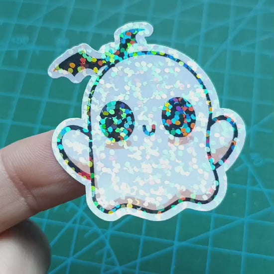 Kawaii Sparkle Ghost Sticker - Boo-tiful Holographic Fun!
