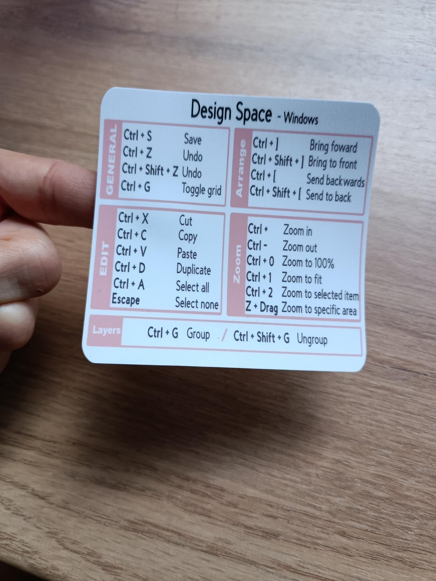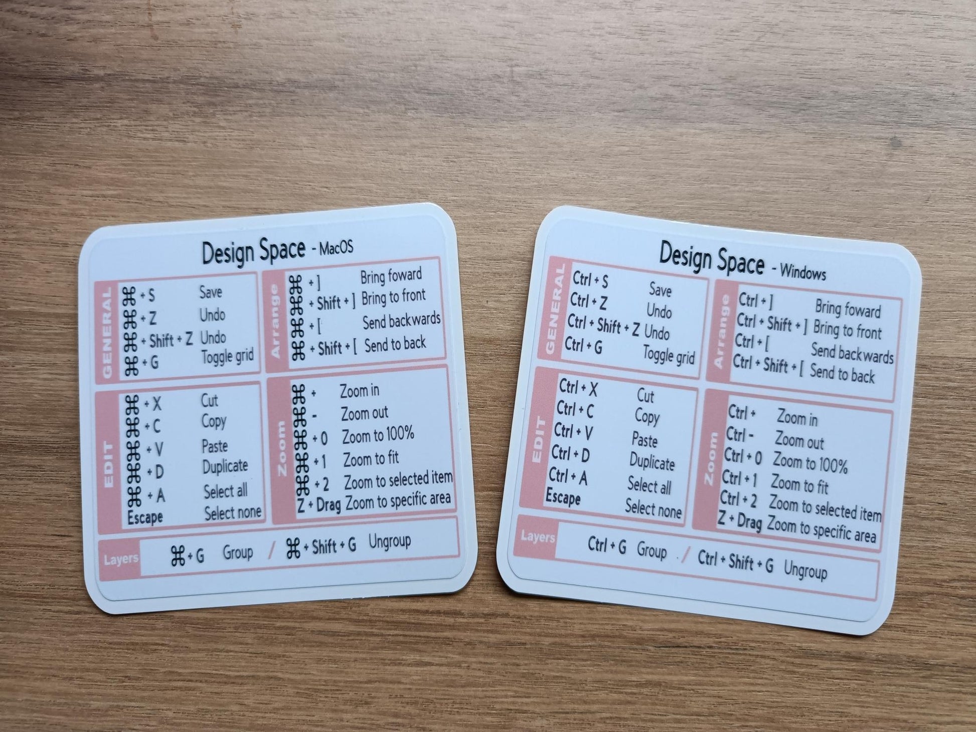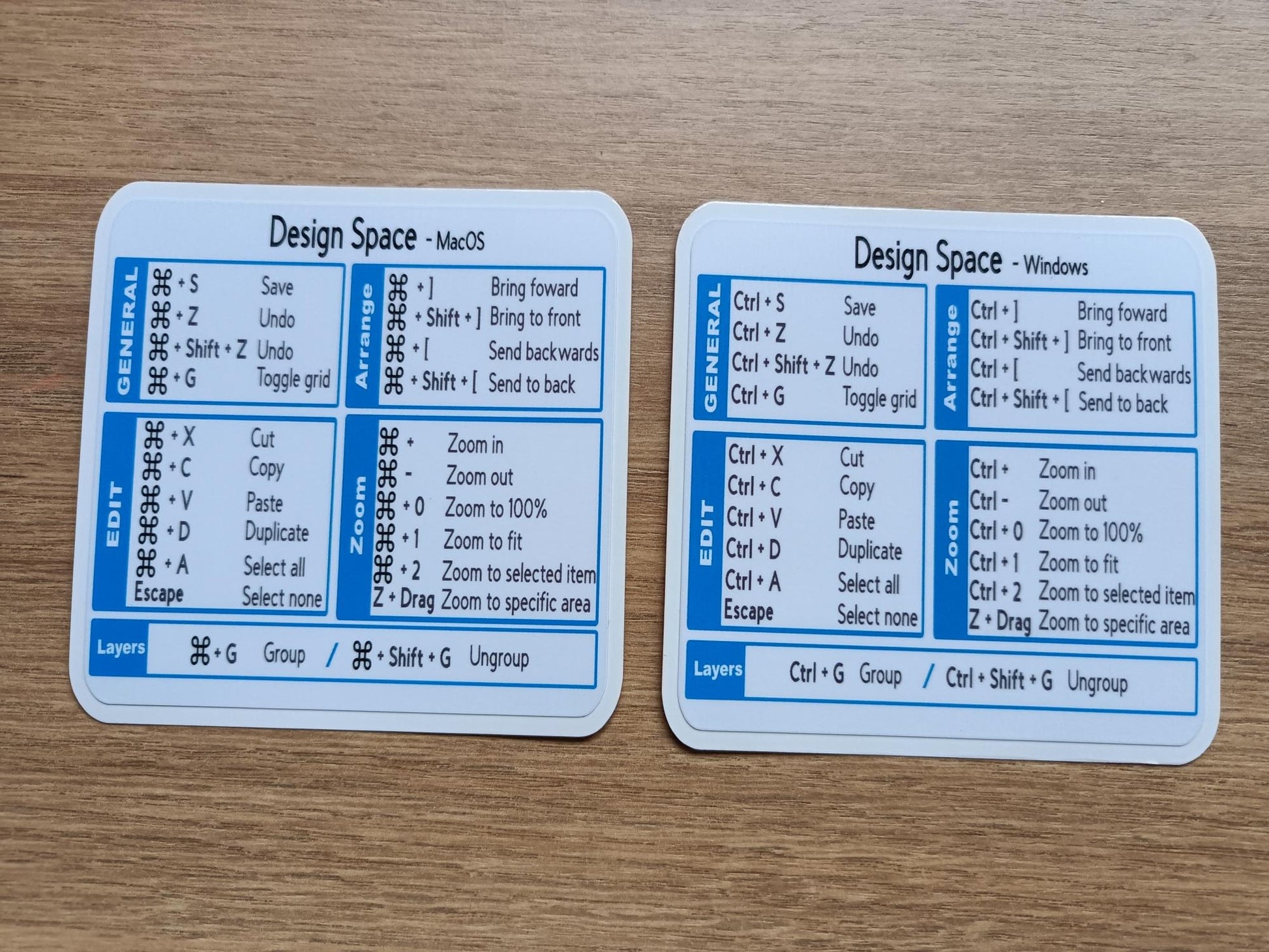 Design Space Keyboard Shortcut Commands Sticker Mac or Windows Premium Laminated Sticker